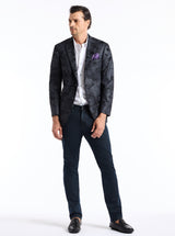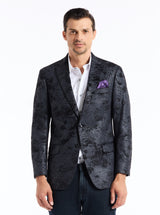 - Pull-out jacquard pocket square at chest pocket