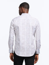 - Contrast print at collar and cuff
