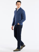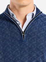Elevate your look with this quarter zip sweater, designed for effortless sophistication. The checkered weave adds a cozy texture, giving the piece unique character. Finished with a distressed look at the ribbed collar, cuffs, and hem, this sweater offers a relaxed, lived-in vibe that’s both comfortable and stylish.