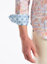 - Contrast print at collar and cuff