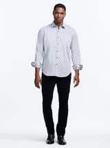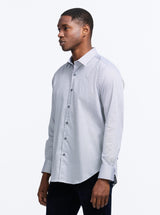 Quiet confidence, crafted in every detail, this long sleeve button down features a tonal crosshatch pattern that reveals itself with a second glance, adding depth, texture, and effortless versatility. It’s a study in understated elegance, where every detail is deliberate and polished. For those who appreciate subtle sophistication, this shirt speaks volumes without ever raising its voice.