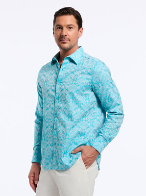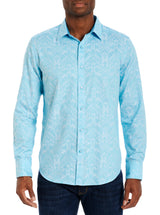 Classic FitYou’ll love this RG best seller and Collector favorite. Now discover our newest essential jacquard, The Highland. A damask motif is celebrated on this stretch cotton jacquard long sleeve button down shirt. Flip the collar for a contrast print.