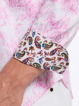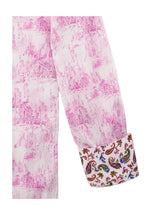 - Contrast print at collar and cuff