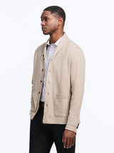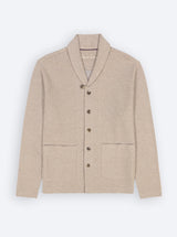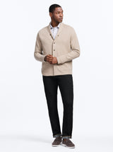 A new essential with timeless sensibility, this shawl collar sweater brings effortless polish to cooler days. Crafted from a cotton knit in a warm oatmeal hue, this style layers as easily over your favorite tee as it does under outerwear. The shawl collar and tonal horn-style buttons offer heritage-inspired refinement. Relaxed yet elevated, the Adriano is a transitional piece made for everyday versatility.