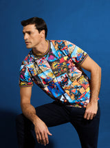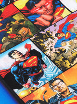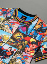 The Superman™ x Robert Graham collection brings together two icons—crafted for those who carry confidence like it's a superpower. Exclusively limited. Individually hand numbered. The Defender tee makes a bold statement with its dynamic allover grid collage showcasing vibrant scenes from iconic Superman comics. "DEFENDER OF JUSTICE" embroidered in metallic gold thread at the front side seam adds a touch of heroic flair, while the collar and sleeves feature signature Superman-colored stripes in red, blue, and yellow. This eye-catching tee celebrates the Man of Tomorrow's colorful legacy both in style and spirit.