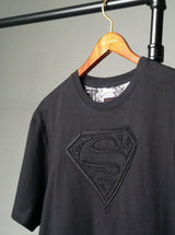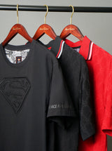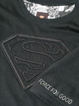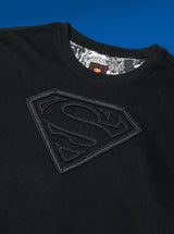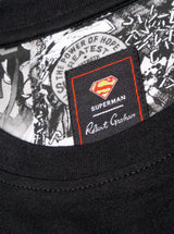 The Superman™ x Robert Graham collection brings together two icons—crafted for those who carry confidence like it's a superpower. Exclusively limited. Individually hand numbered. This premium black tee elevates casual style with its distinctive raised embroidered Superman S-shield on the front—adding sophisticated shine and texture that echoes the Man of Tomorrow's suit. Inside, discover a black and white Superman collage at the yoke, while "FORCE FOR GOOD" is 3D-printed at the sleeve—a subtle reminder of Superman's enduring values. Modern heroism meets refined craftsmanship in this standout essential.
