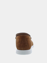 A classic loafer gets a sporty touch. Notice the elegant black suede that serves as a stylish contrast to the sneaker-like sole. Slip these on and be ready for any occasion. A padded midsole adds that extra kick of comfort.